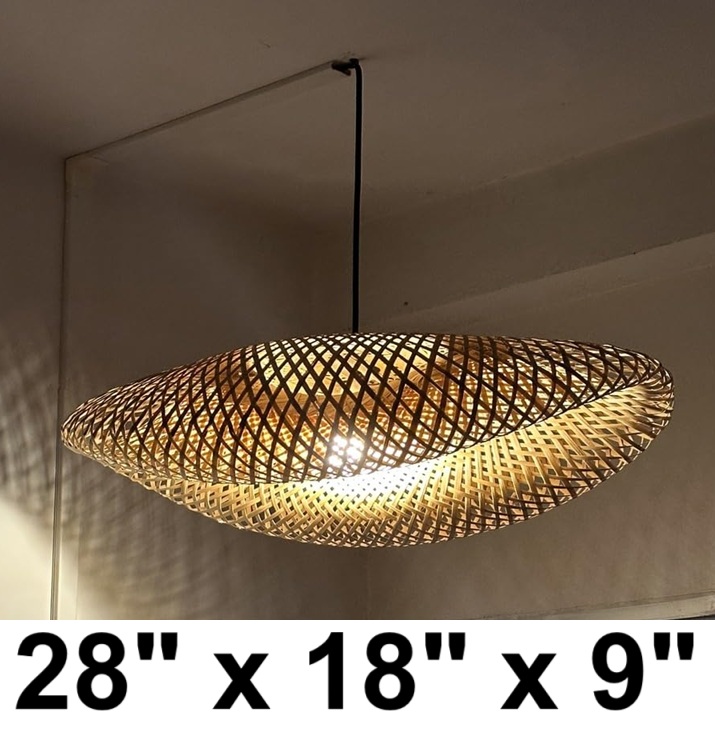 House of Locals Handcrafted Eco-Friendly Lemonade Curved Natural Pendant Hanging Light Fixture - 28" x 18" x 9" - Bamboo (Model: ‎H-BO-01L01)