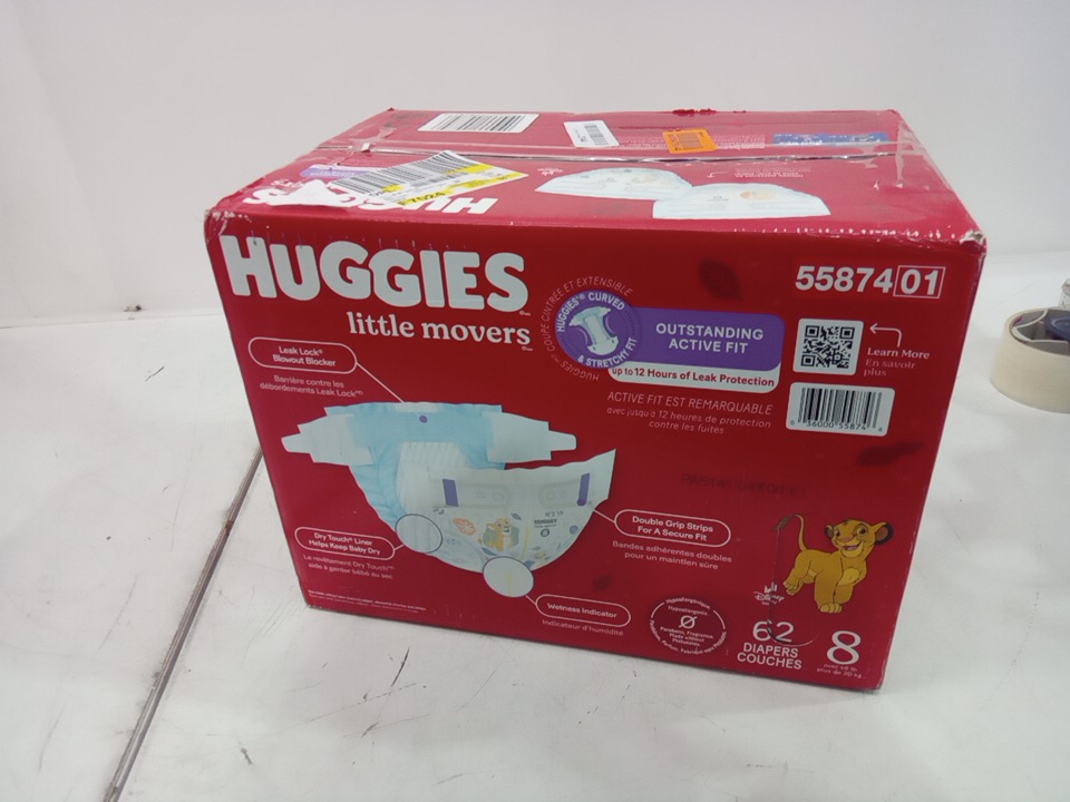 62PK Huggies Little Movers Diapers, Size 8 (46lb.)