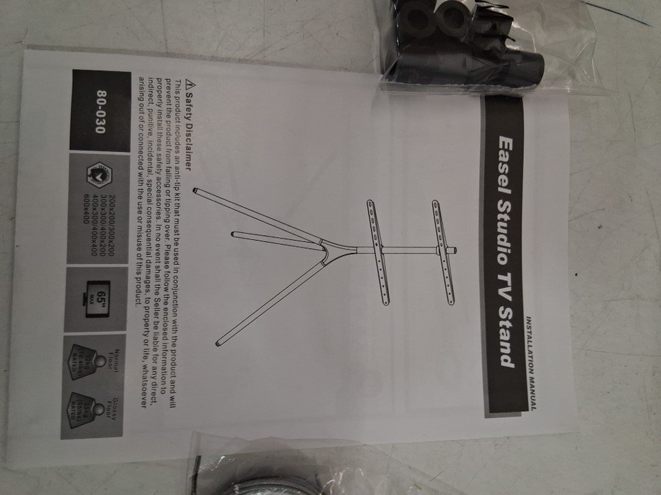 DURAMEX ADJUSTABLE EASEL STUDIO TRIPOD TV STAND, 65" MAX SCREEN, 55-70LBS MAX, - BLACK/BROWN- (MODEL: 80-030)