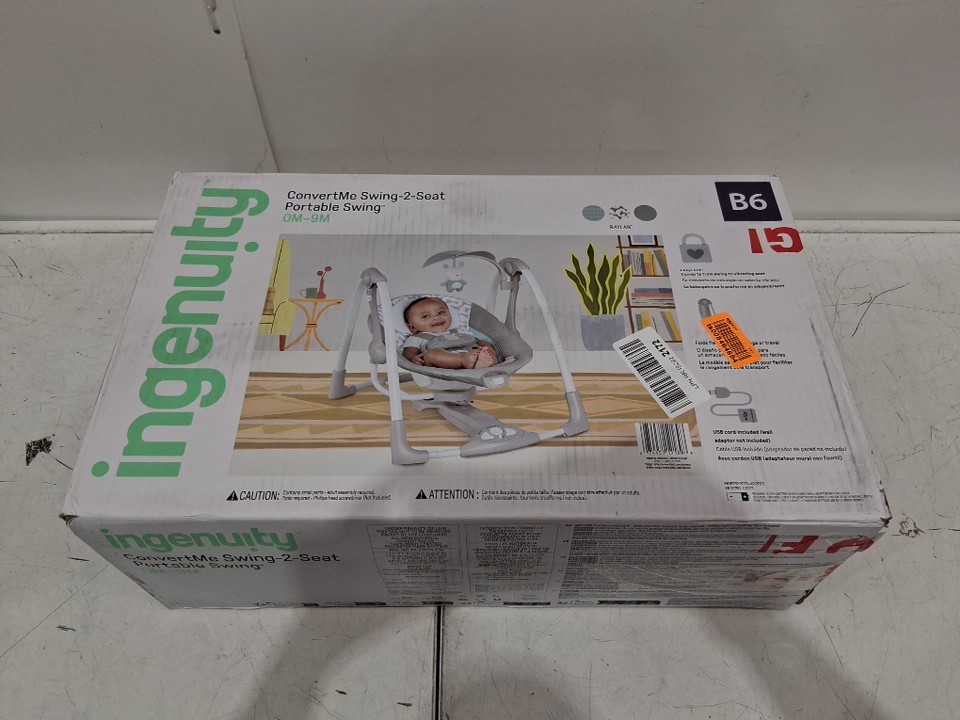 INGENUITY convertme 2-in-1 compact portable plug in automatic baby swing and infant seat - 0 to 9 months - 6lbs to 20lbs - grey - (model: 12189)