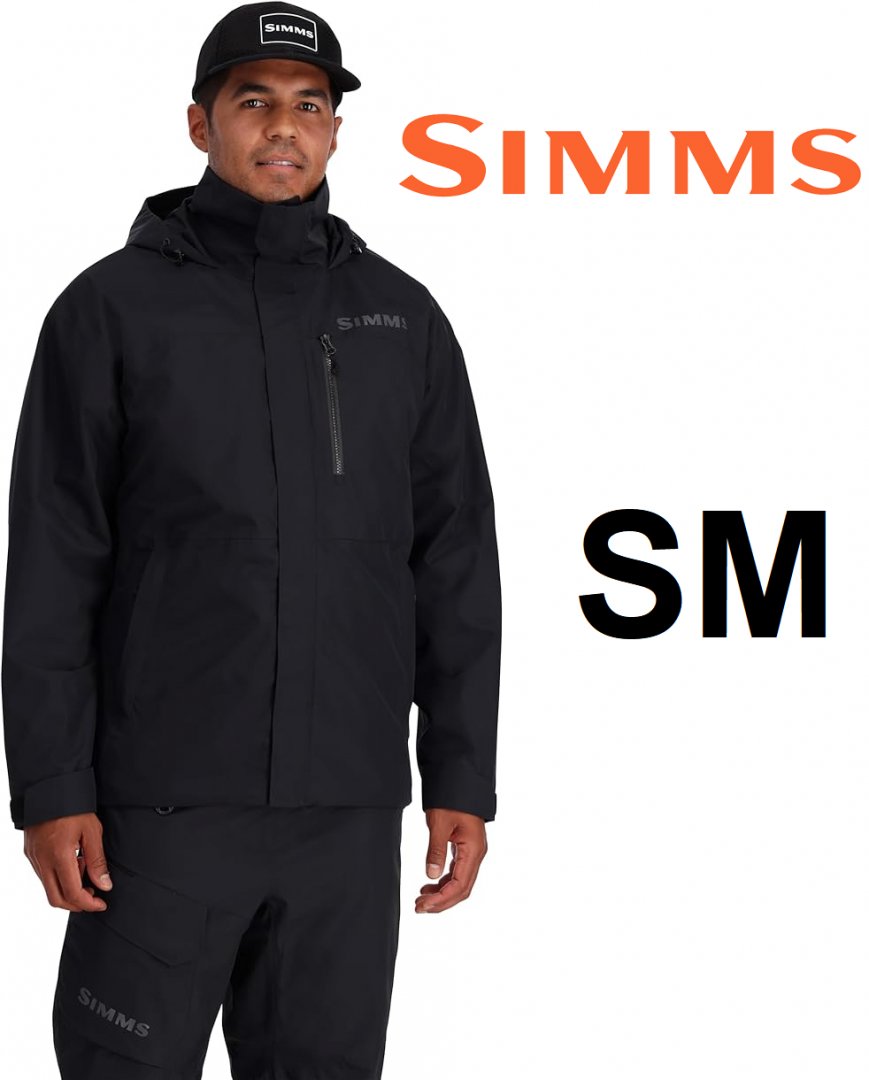 MEN'S Simms CHALLENGER JACKET with adjustable removable storm hood and reflective logos - SMALL - BLACK