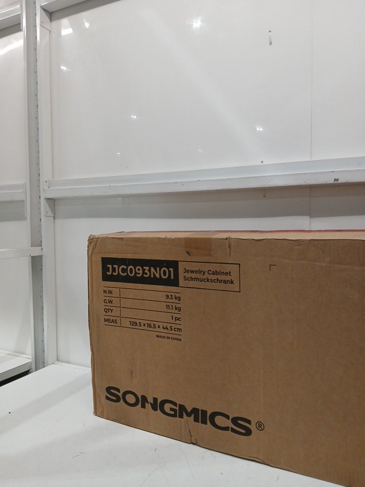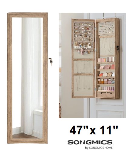 songmics led mirror jewelry cabinet - 47" x 11" - toasted oak - (model: UJJC093N01)