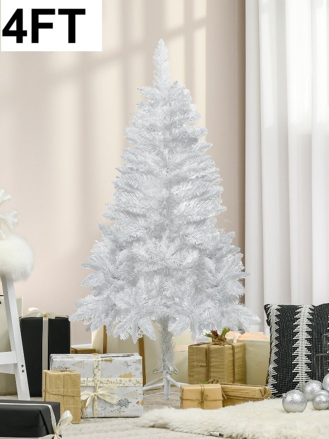 HOMCOM Artificial Christmas Tree with Pine Realistic Branches - 4ft - WHITE (MODEL: 830-544V00WT)