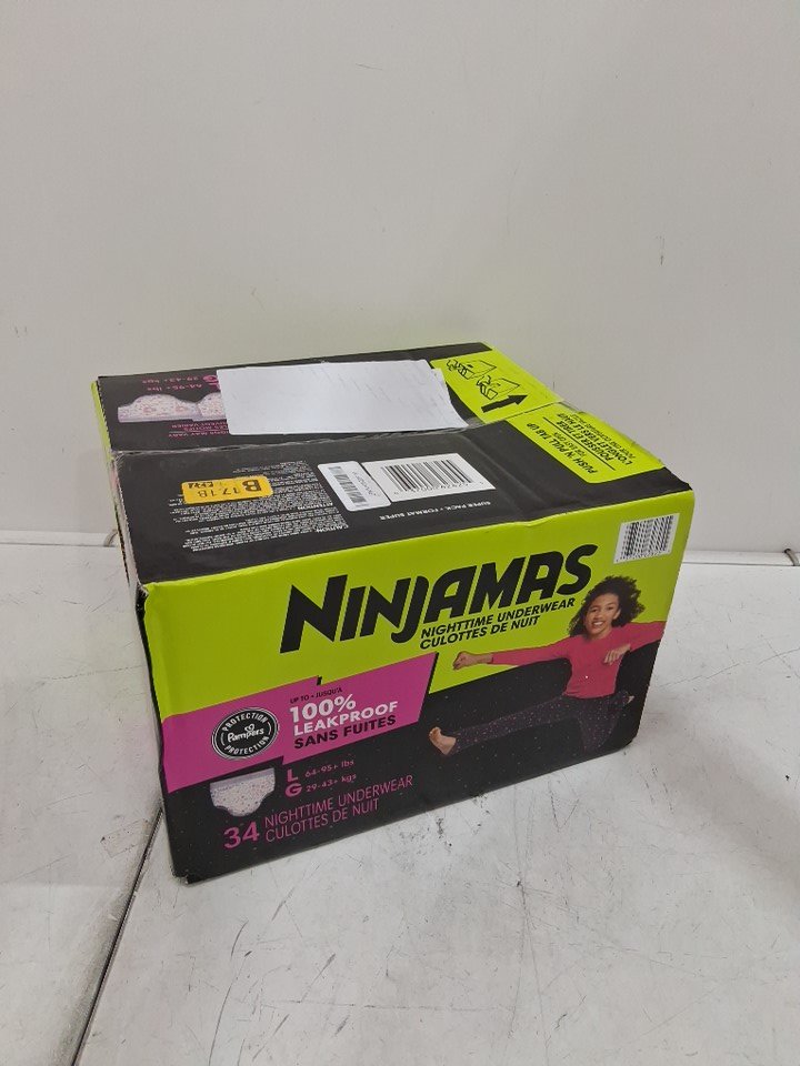 34PK GIRLS NINJAMAS NIGHTTIME UNDERWEAR WITH ODORMASK & ALL-NIGHT LEAK PROTECTION - LARGE 64-95 LBS - PINK/MULTICOLOUR