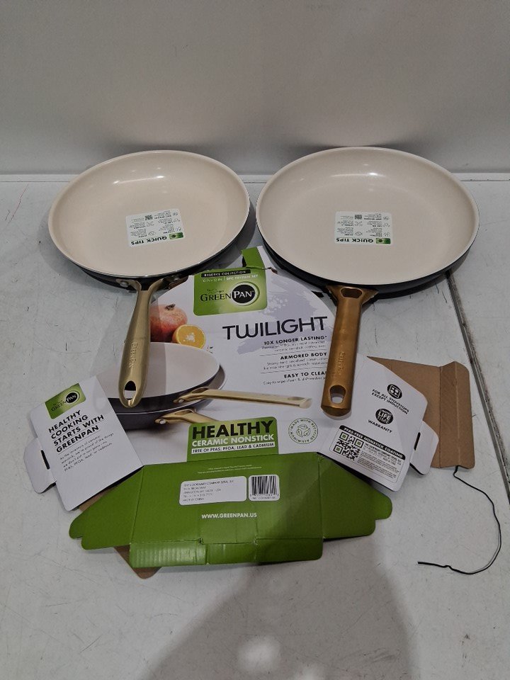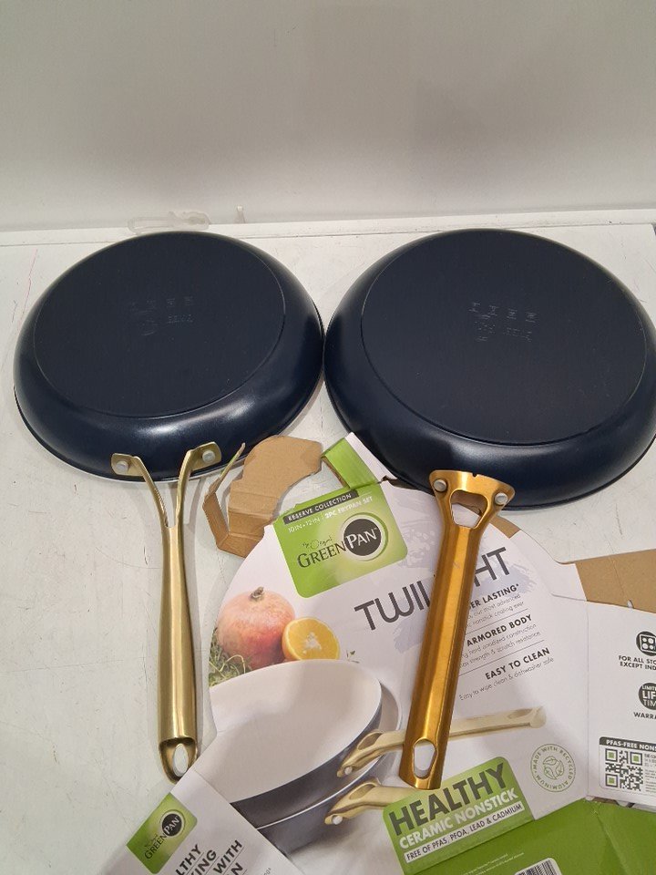 2PC GreenPan TWLIGHT Reserve Pro Ceramic Nonstick Fry Pan Set - 10" / 12" - WHITE /NAVY
