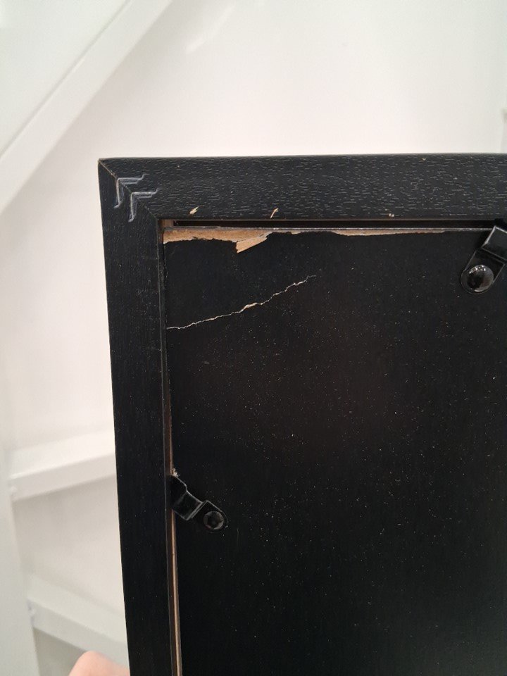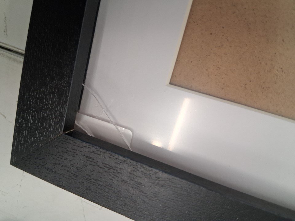 small crack in corner of plexiglass, some cosmetic damage on back of frame.