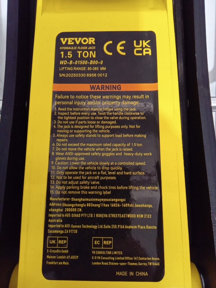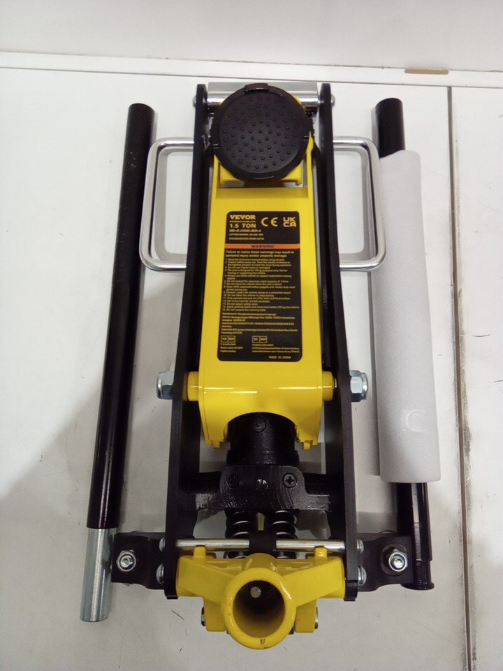 vevor low profile hydraulic floor jack with dual pistons - 1.5 ton capacity - yellow / black (model: WD-B-01500-B00-0)