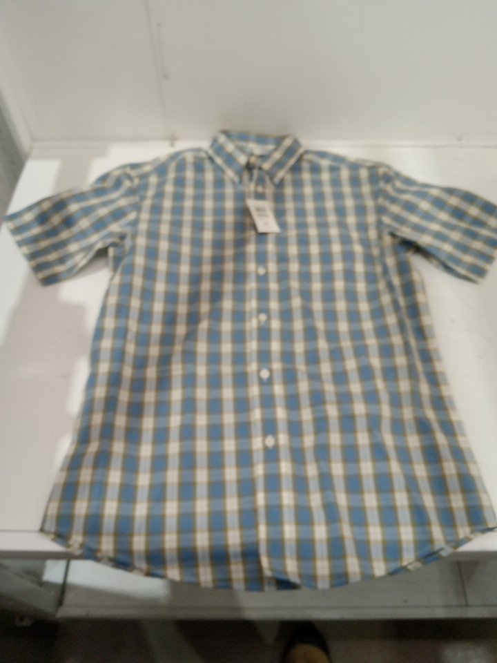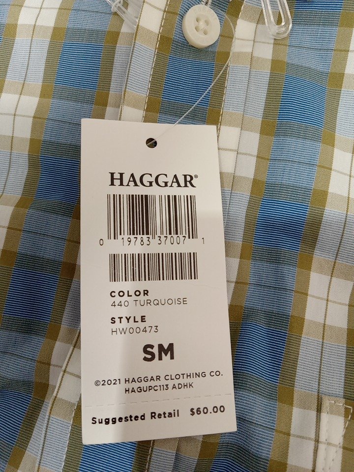 men's haggar short sleeve button up shirt - small - turquoise plaid