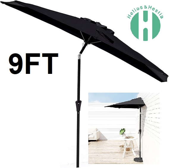 Helios&Hestia Outdoor Market Patio Table Umbrella with Tilt and Crank - 9ft - BLACK (model:HHTJ-09BLACK)