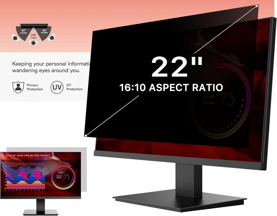 BERSEM Removable Computer Privacy Screen Filter for 16:10 Ratio Monitor WITH ANTI-GLARE - 22"