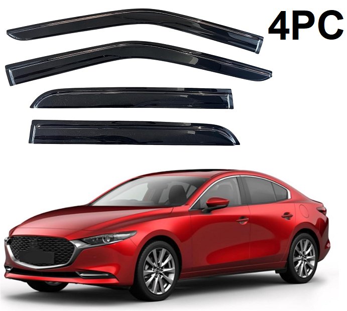 4pc kpy rain guard window visors compatible with mazda 3 sedan 2019-2024 - black (model: ‎811921)