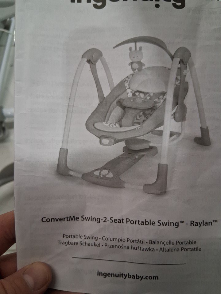 INFANT'S INGENUITY CONVERTME SWING-2-SEAT CHAIR - 0-9M - WHITE/GREY RAYLAN - (MODEL:B6)