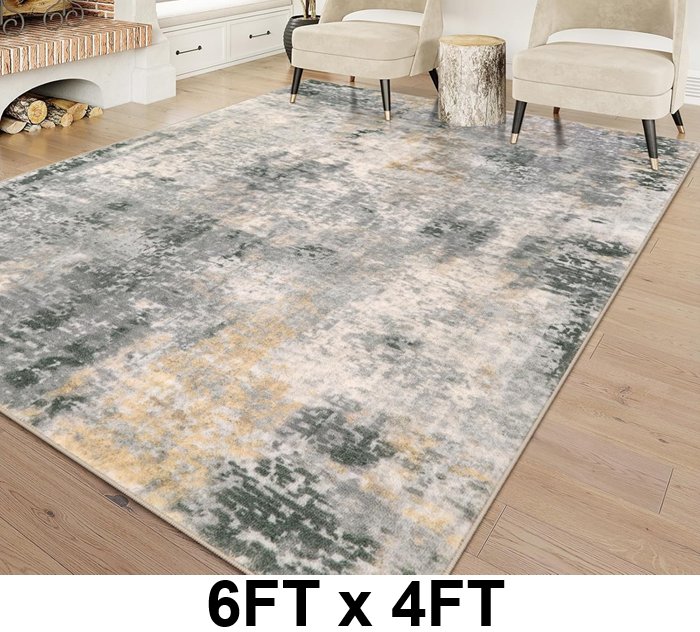Modern Abstract Low Pile Non Slip Area Rug for Living Room - 6FT X 4FT - GREY/CREAM