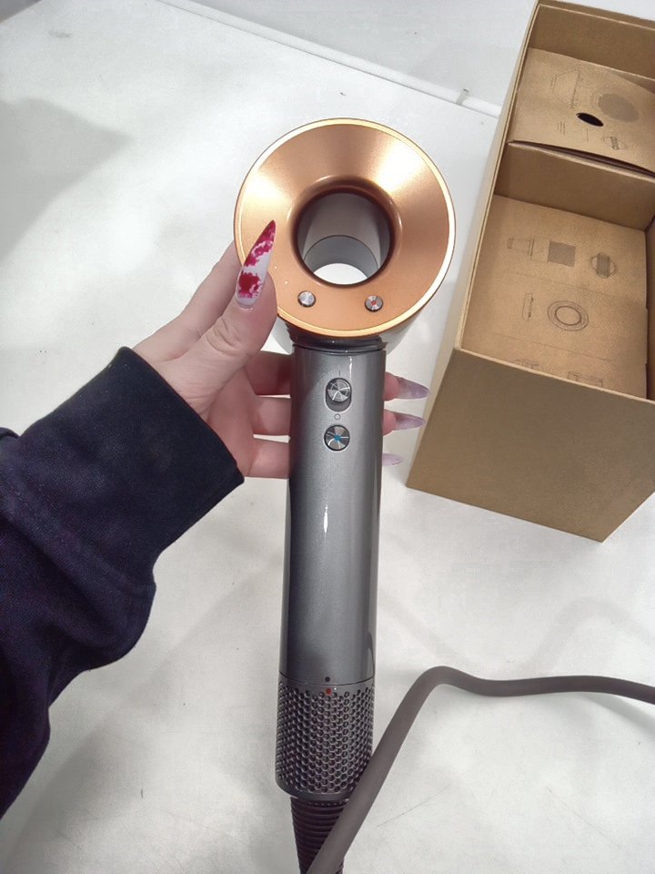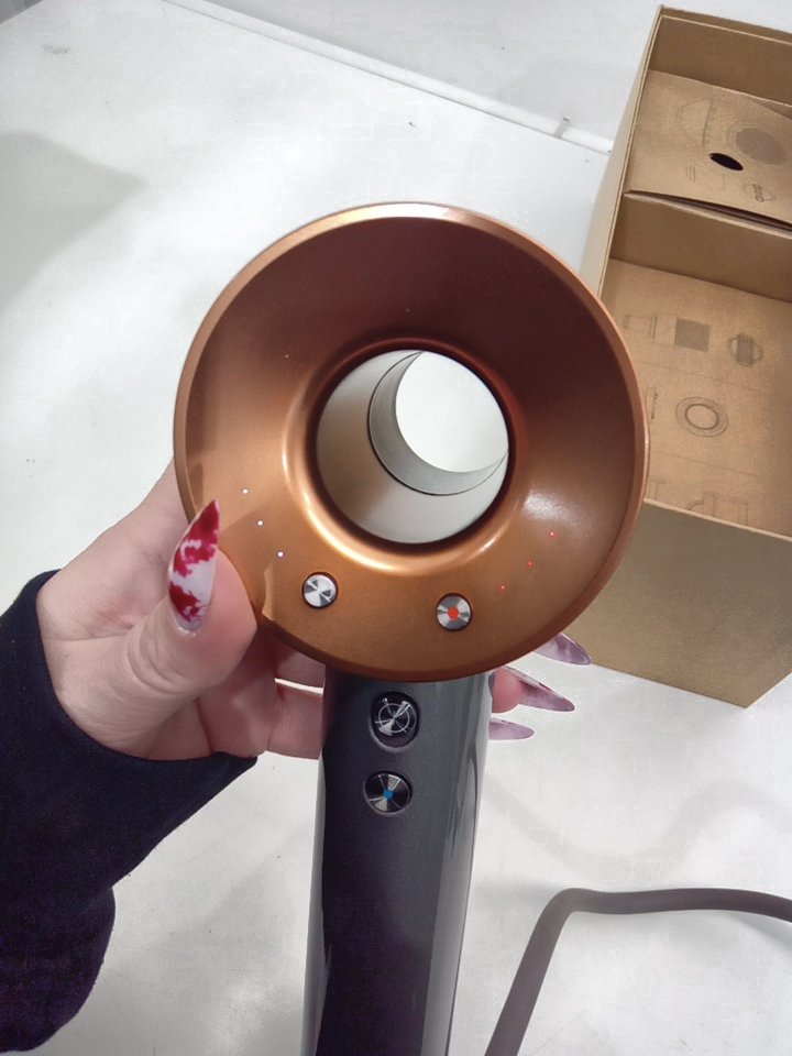 DYSON SUPERSONIC HAIR DRYER WITH STYLING CONCENTRATOR, SMOOTHING NOZZLE AND DIFFUSER - bright nickel and copper - (model: hd07).