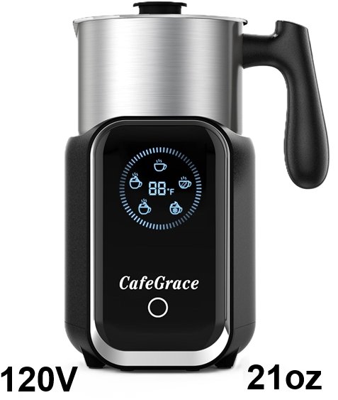 CafeGrace 5-in-1 Automatic Milk Frother and Steamer - 21oz - 120V - Black/Silver