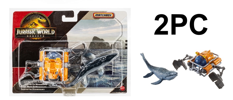 2PC Matchbox Jurassic World Dino Transporters - Mosasaurus Sea Sub - Orange/Blue
