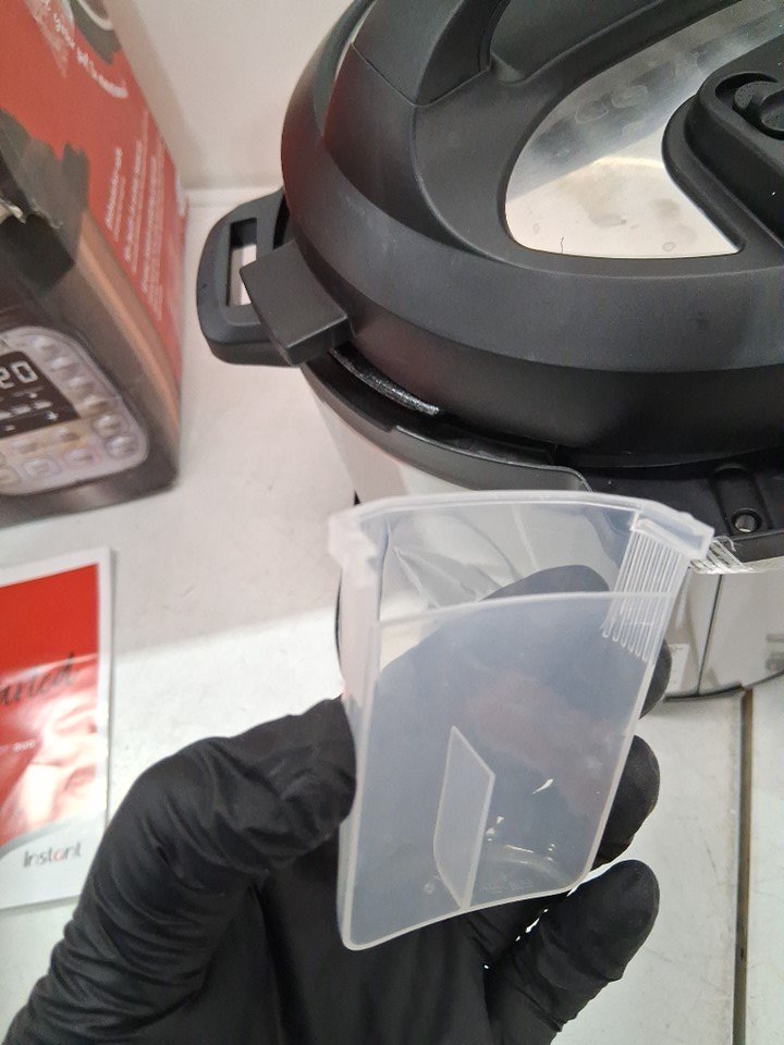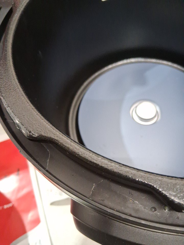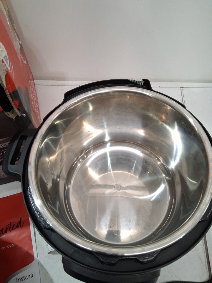 please note there is some water marks and other light food residue in and around the pot from previous use, as well a dent on the back, however it doesn't go through and doesn't affect the function