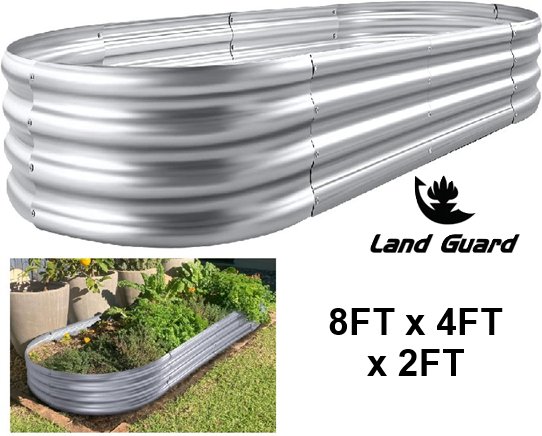 Land Guard DOUBLE LAYER Galvanized Raised Garden Bed Kit - 8FT x 4FT x 2FT - SILVER