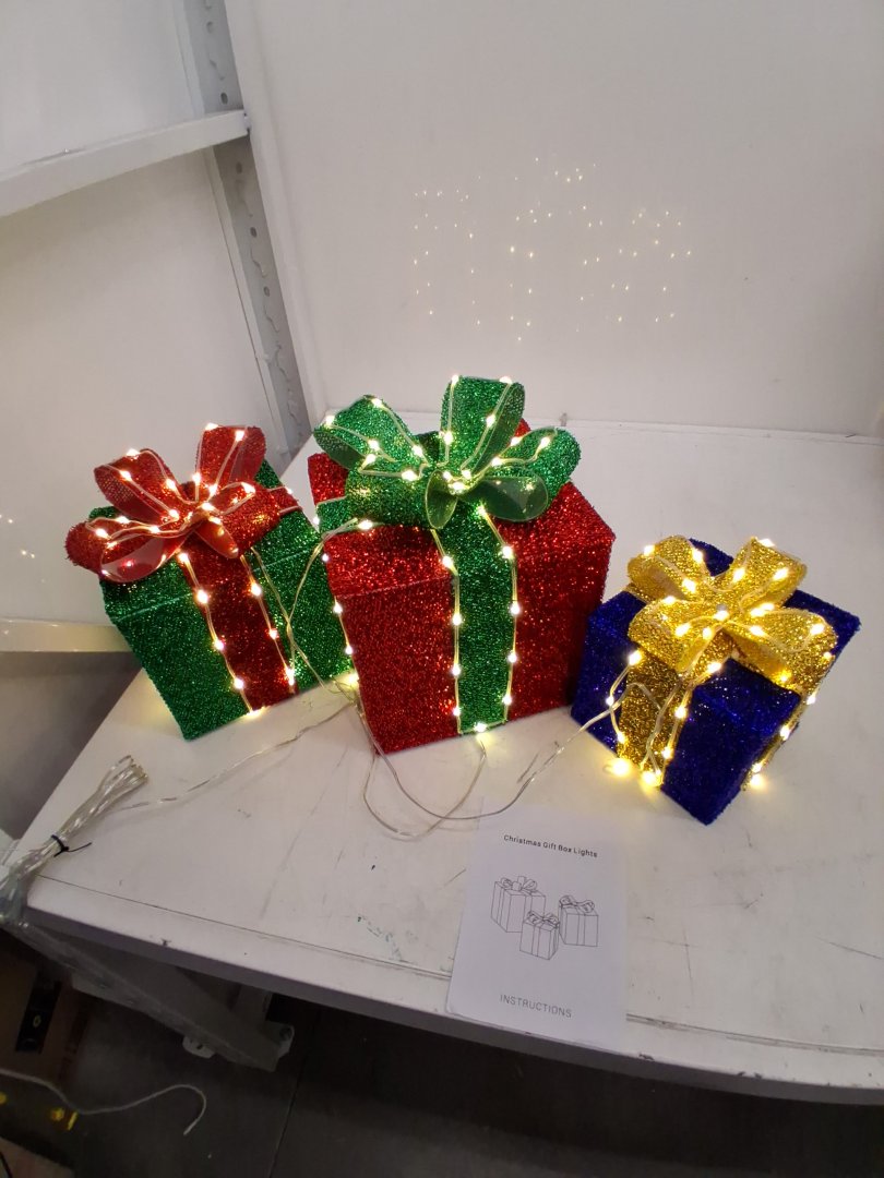 3PC Light up Christmas gift box decor set - Red/Green/Blue