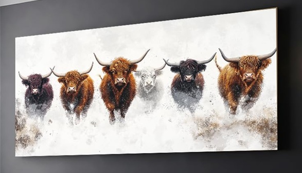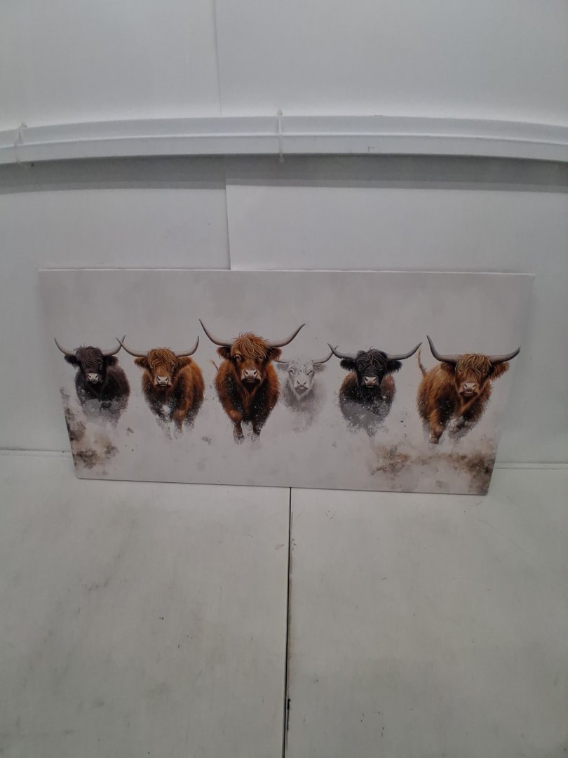 LASMOND Highland Cow Farmhouse Decor Canvas Wall Art - 40" x 20" -Multicolour (Model: Brown Highland Cattles 510)
