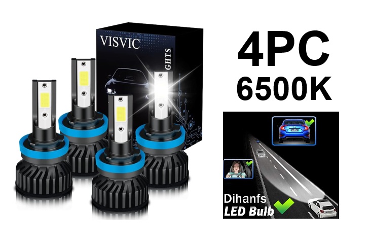 4PC VISVIC LED Headlight Bulbs Halogen Replacements - Low & High Beam - 6500K