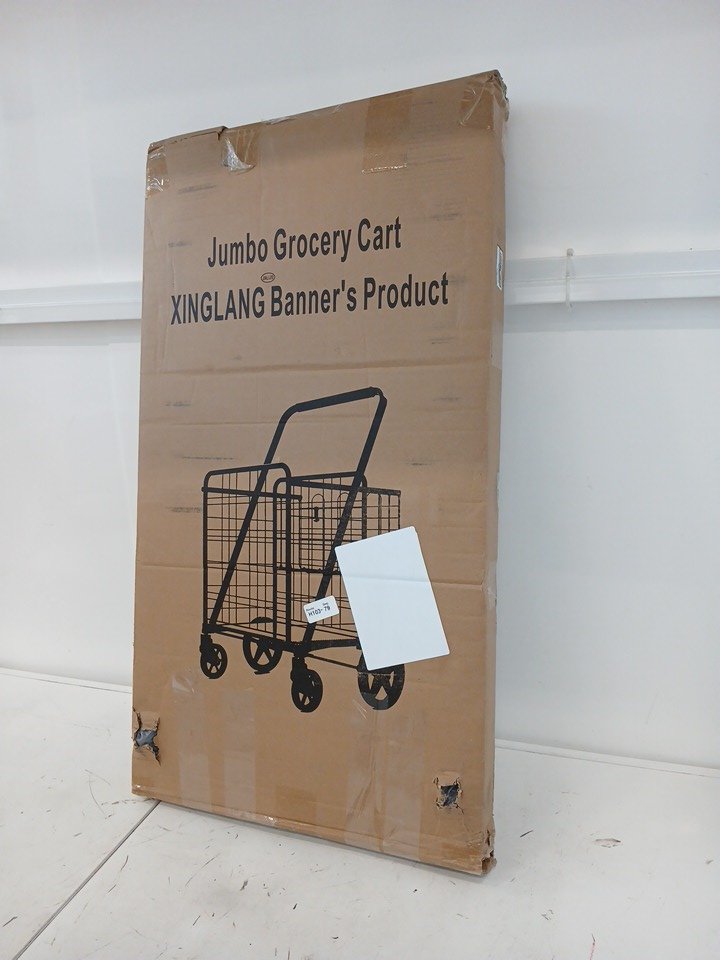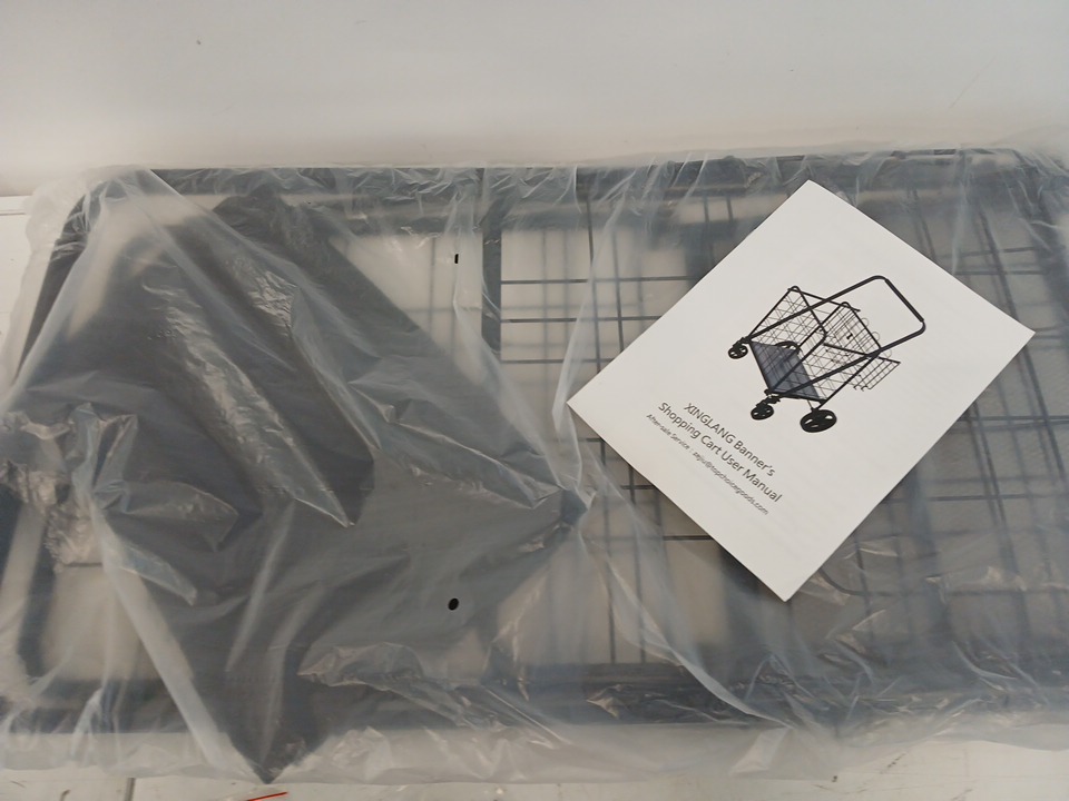 XING LANG Folding Shopping Cart with 360° Rolling Swivel Wheels & Brakes - Large Foldable Grocery Cart with Double Basket & Waterproof Liner - 24" x 24" x 41" / 480lbs max - black