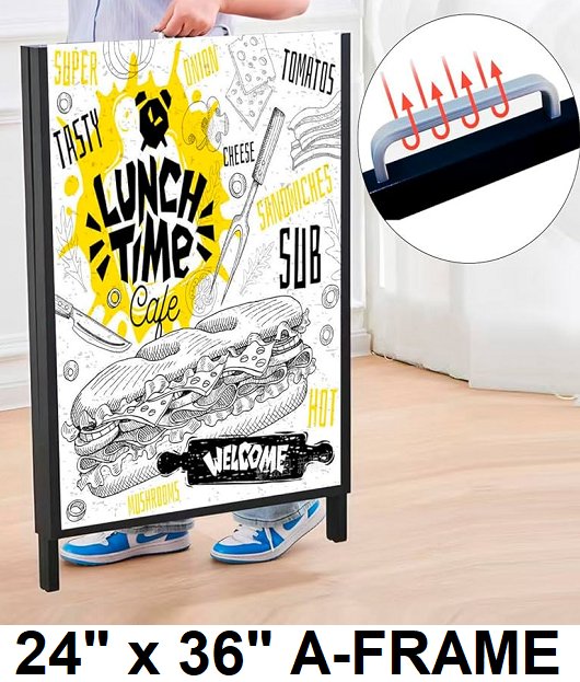 MAEKLON MENU BOARD , DOUBLE SIDED A-FRAME ADVERTISING POSTER BOARD - 24" X 36" - BLACK