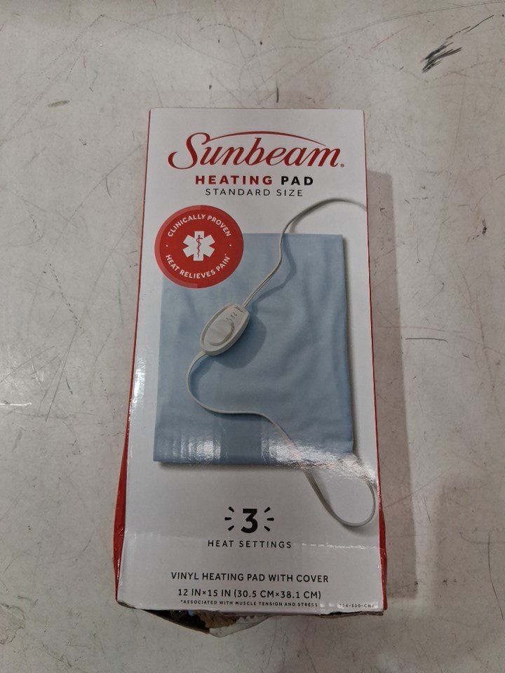 SUNBEAM CLASSIC STANDARD SIZE HEATING PAD WITH 3 HEAT SETTINGS - 12"x15" - blue (MODEL: 756-500-CNR)