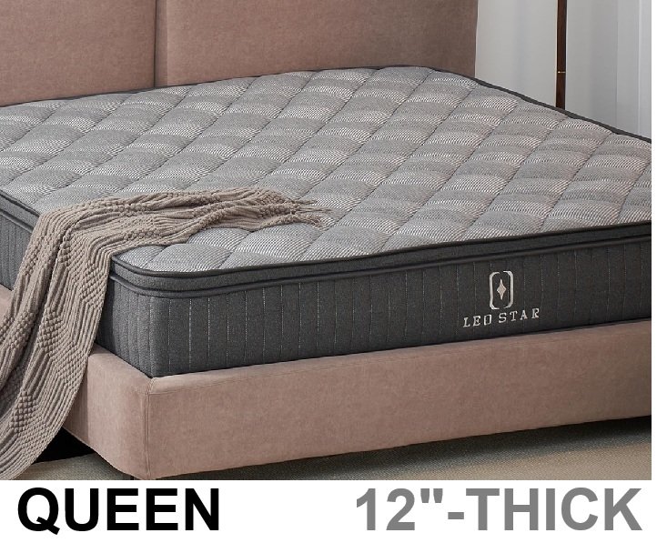 Leo Star Hybrid Mattress with Pressure Relief Comfort Foam and Integrated Cooling - QUEEN - 12"-THICK - Grey/Black - (MODEL: 12Q)