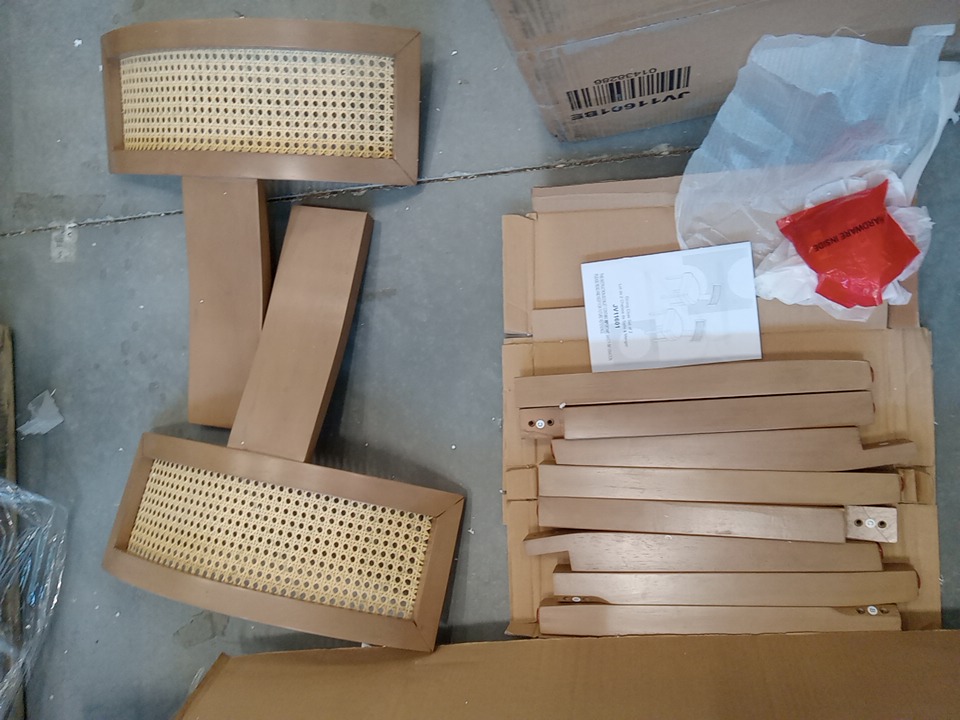 2PK COSTWAY Linen upholstered & rattan dining chairs - beige/natrual wood (model: jv11601be)