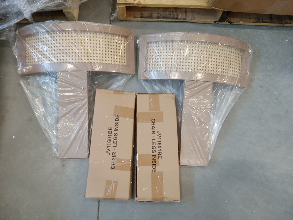 2PK COSTWAY Linen upholstered & rattan dining chairs - beige/natrual wood (model: jv11601be)