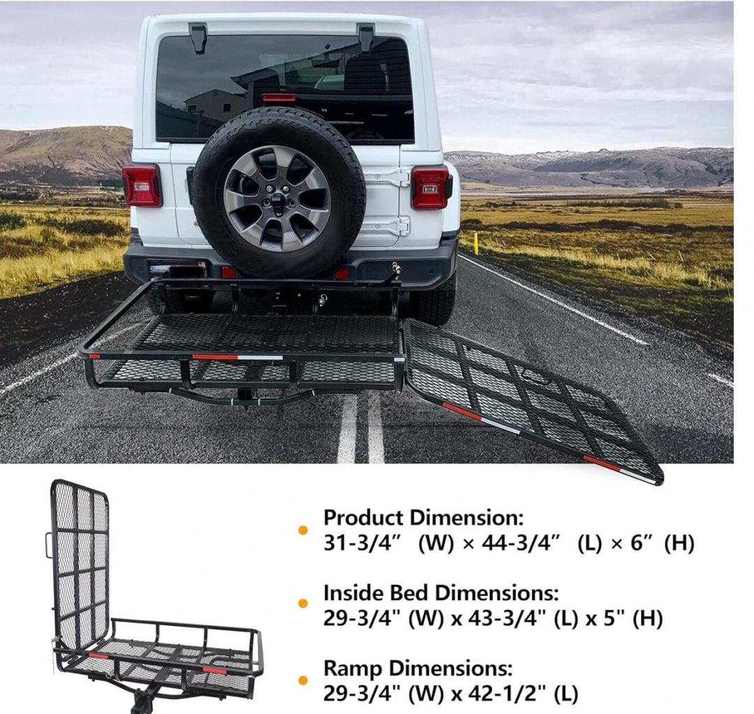 ECOTRIC Hitch Mount Carrier with Mobility Ramp - 500LBS MAX - BLACK - (Model: LYA-033S)