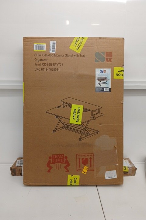 SHW ADJUSTABLE DESK WITH MONITO RISER 36" - RUSTIC BROWN (MODEL:OD-82B-R#BY)