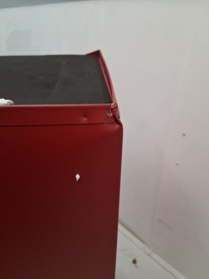 the drawer on the cabinet piece does not open and has a ew scuff marks there is a few dents on the side of the bottom and the top back left corner is dented (photos will show)