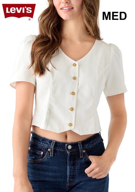 Womens levis moxie button up buckle back short sleeve shirt - MED - white - (style: 003PE0002)