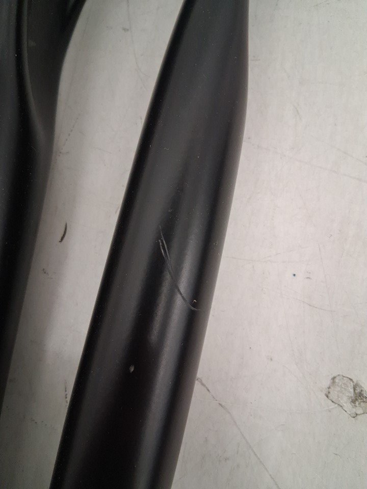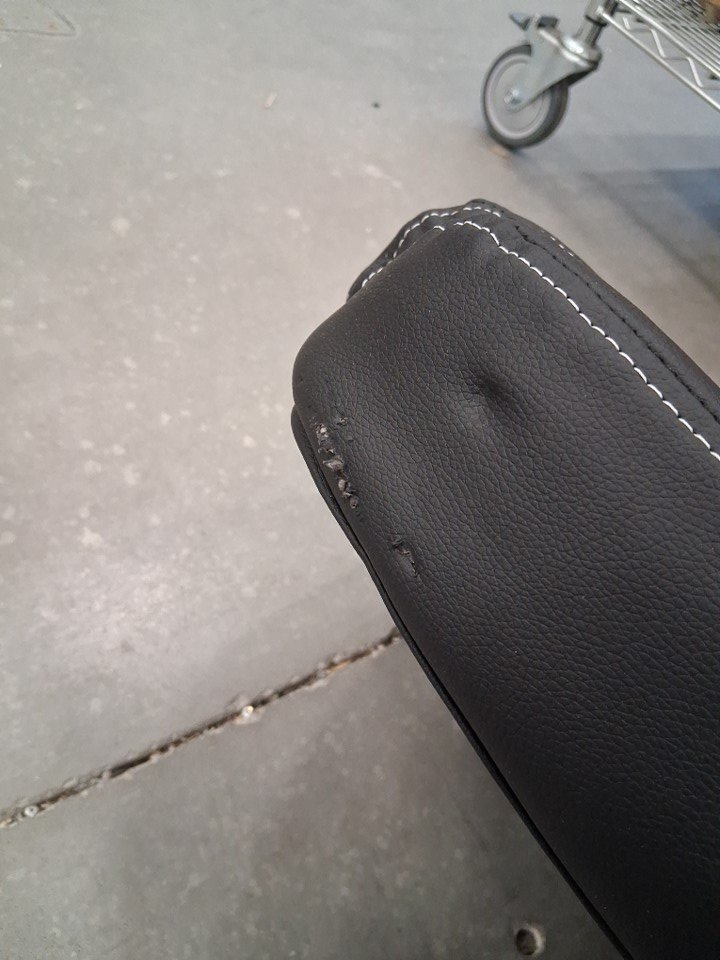 There is a small rip on one side of the backrest, and some light scuffs on some of the legs and on the bottom of one armrest due to shipping - see photos. Otherwise, appears to be in new condition.