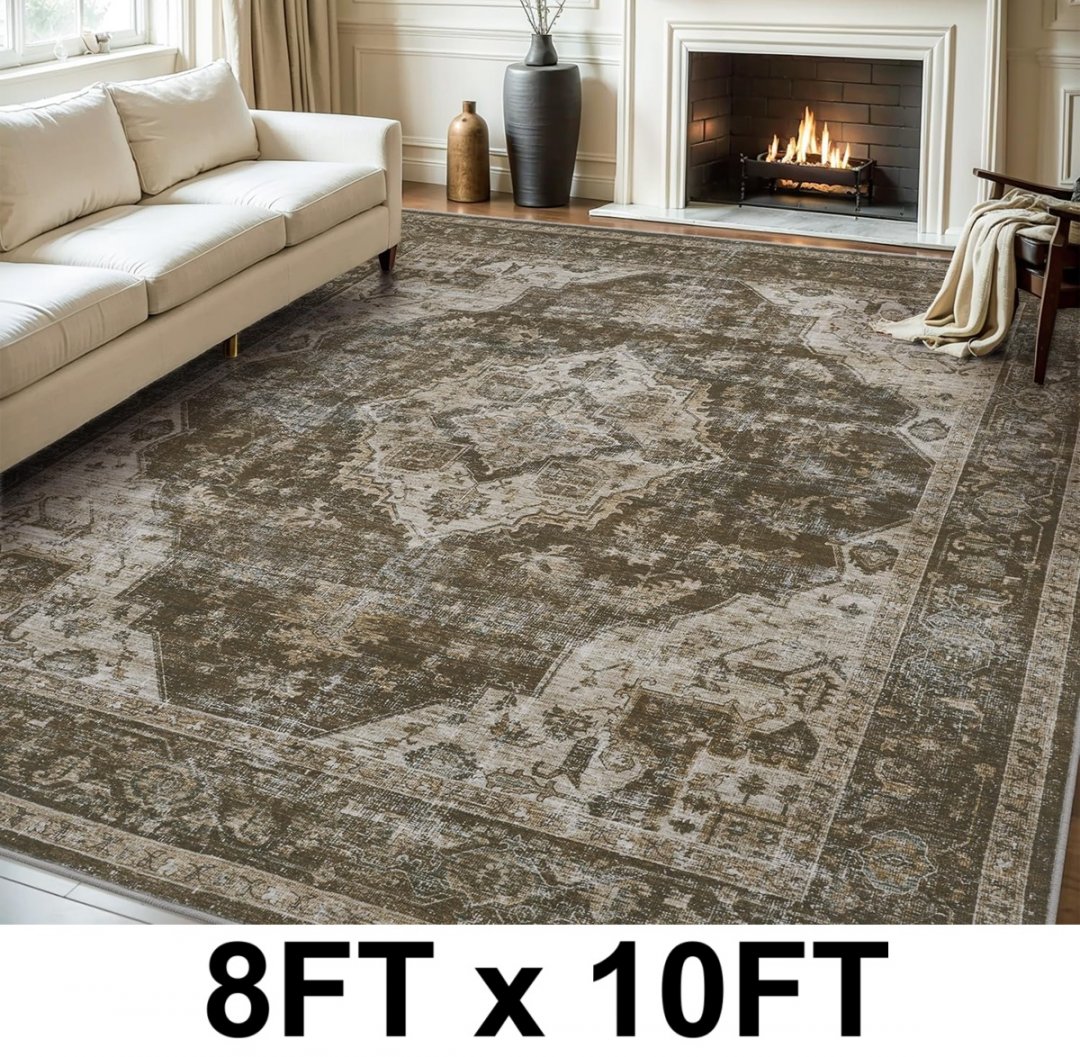 montvoo washable vintage area rug - 8ft x 10ft - coffee - (model: ca-moonlight-coffee-8x10)