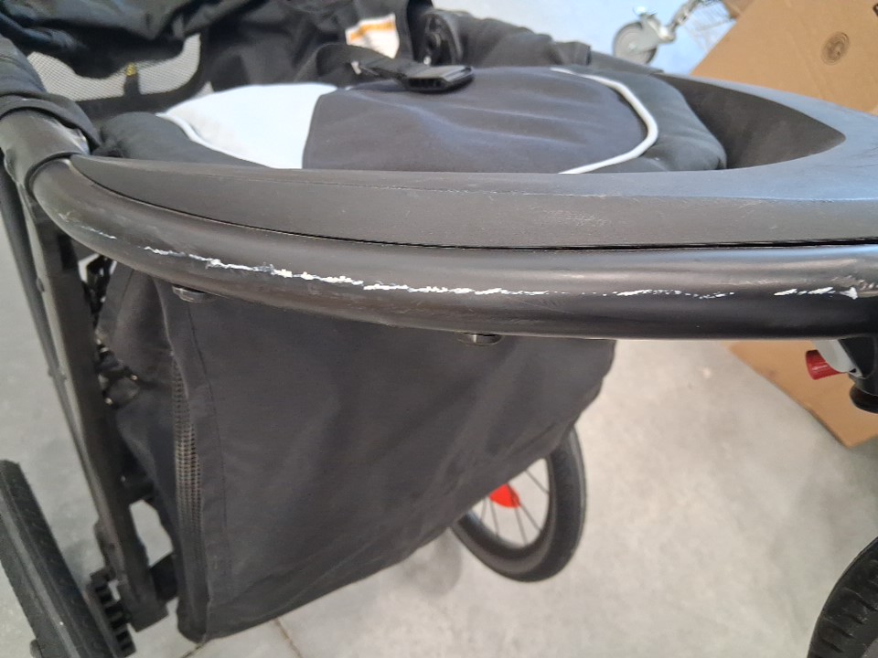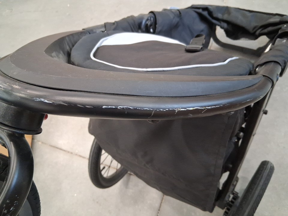 There is a noticeable amount of dust on the side of the car seat and on the stroller wheels as well as some scuffs and light dirt on the stroller itself indicating some previous use, but all parts appear present and in very good condition - see photos.