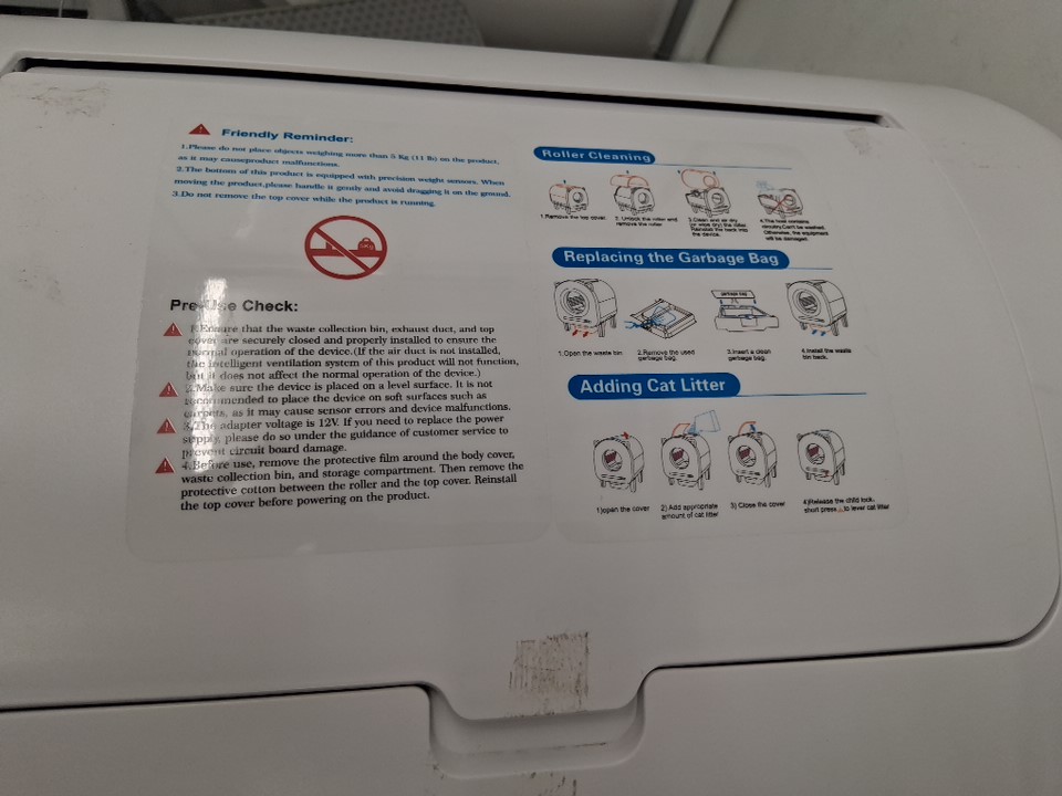 There is some litter residue on the inside of the machine, and some dust and dirt on the exterior and accessories, indicating some previous ownership, but all parts appear to be in good condition and power and function appear normal - see photos.