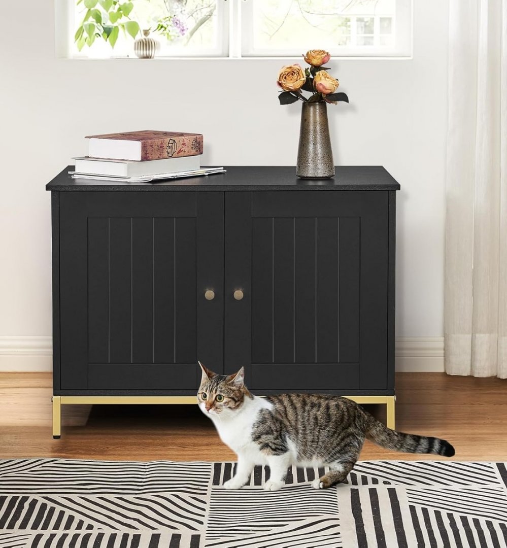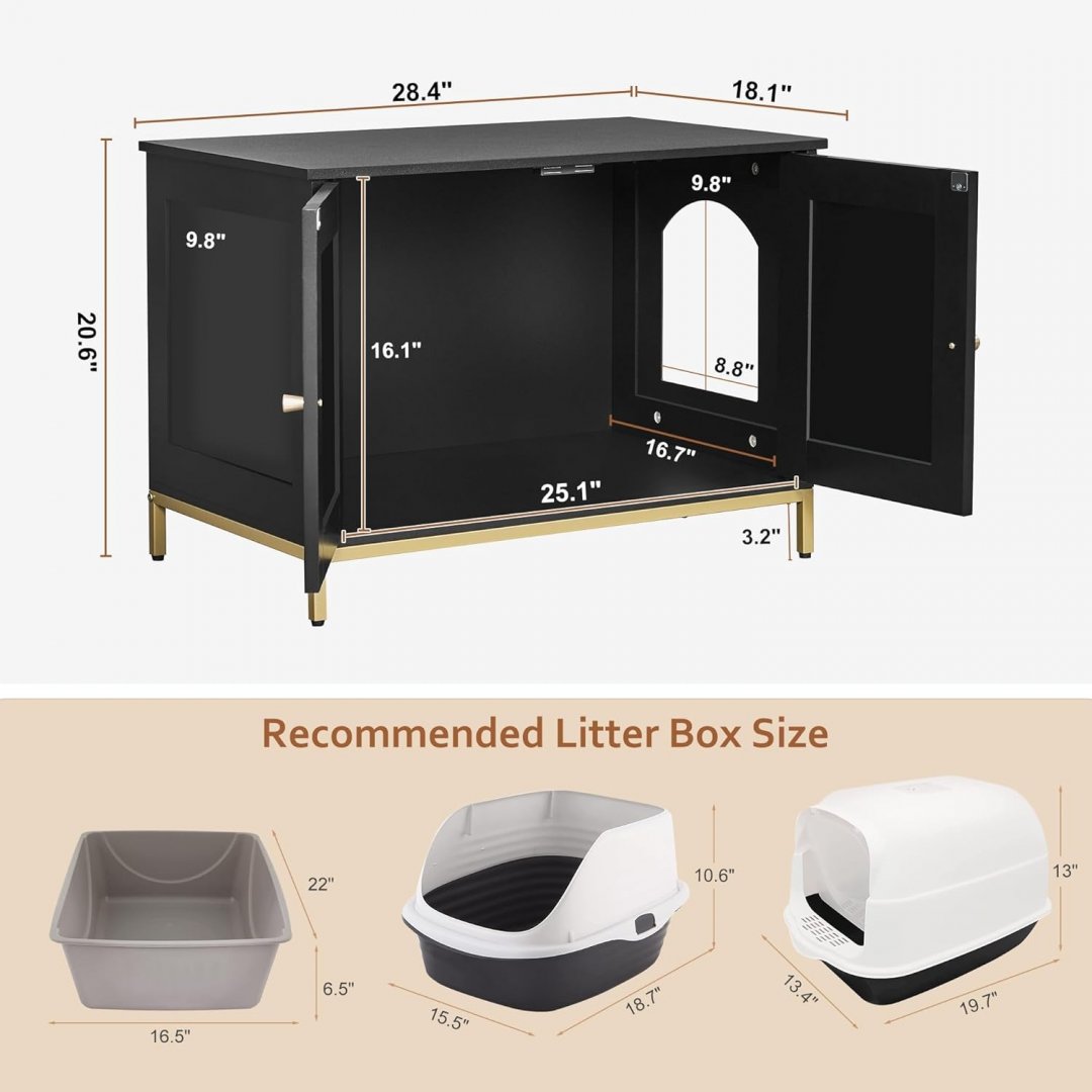 Homhedy Cat Litter Box Enclosure with Metal Frame - Black/Gold (CL70H)