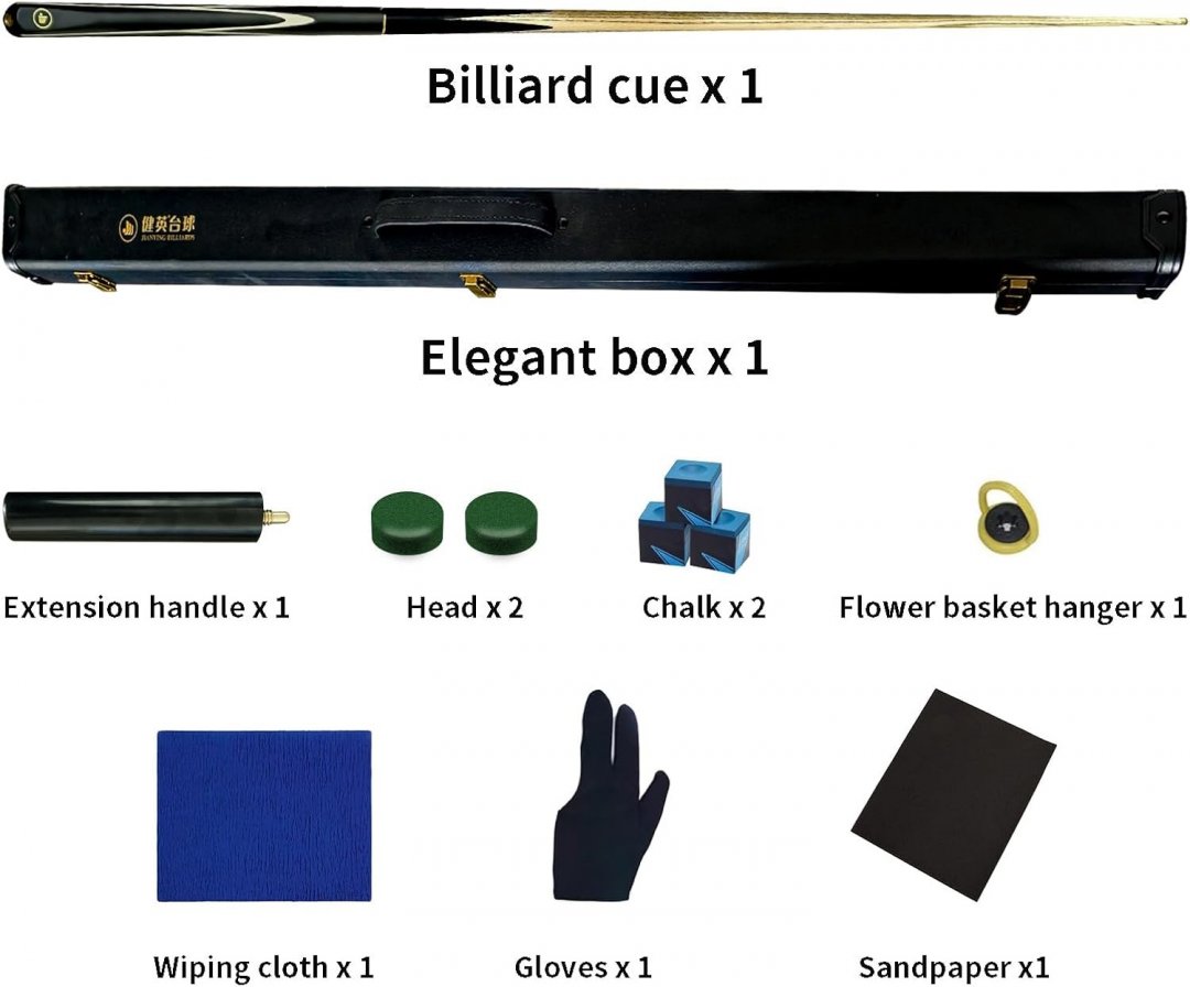 pindaprda Handmade English Snooker Billiard Cue - 57", 10mm Cue Tips - BLACK