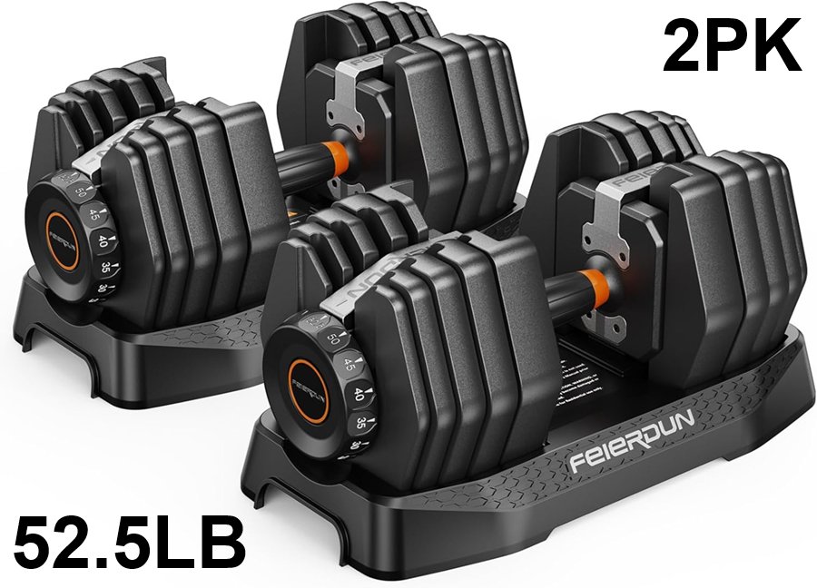 2PK FEIERDUN Adjustable dumbbell - 5-52.5LBS - BLACK/ORANGE