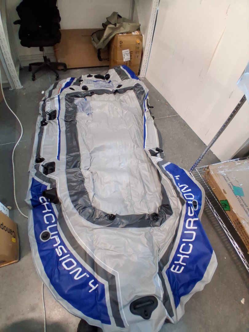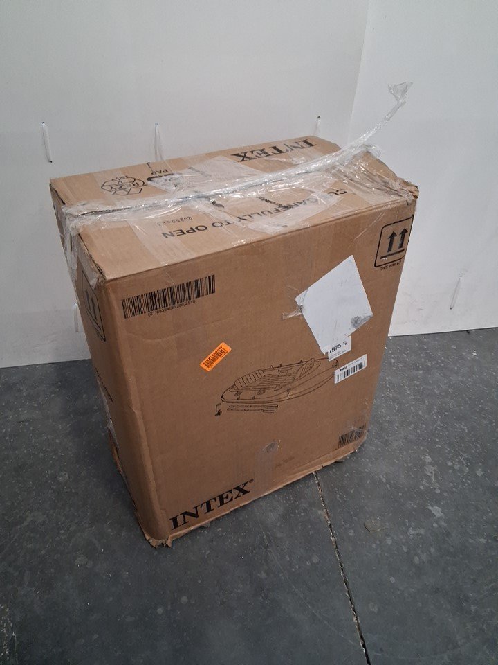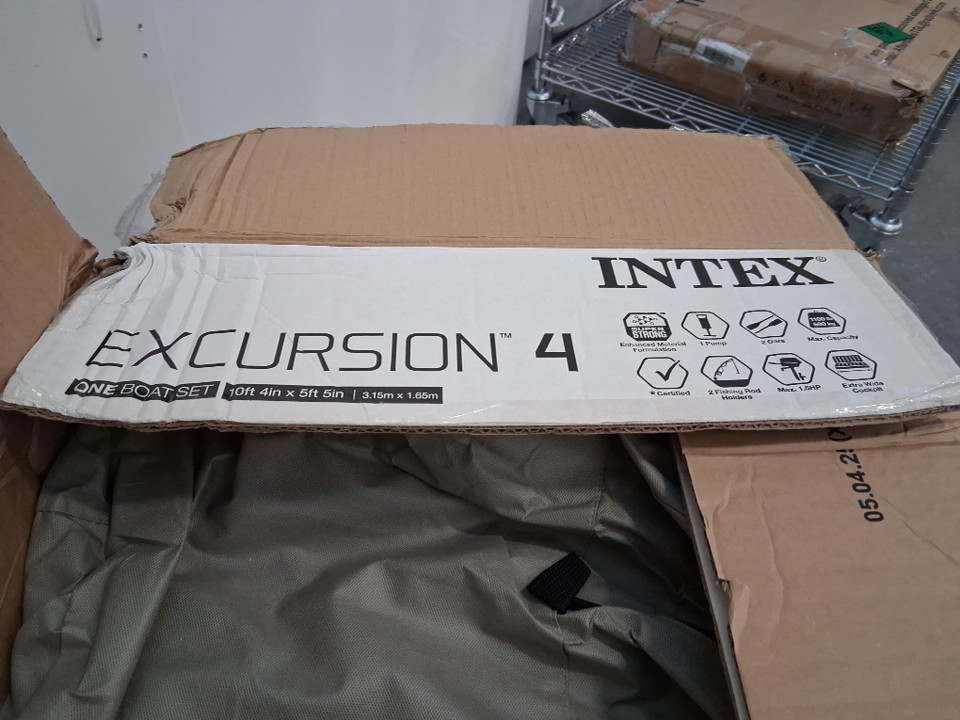 INTEX EXCURSION 4-PERSON INFLATABLE BOAT WITH MOTOR MOUNT FITTINGS, PADDLE, PUMP & CARRY BAG, 880LB RATING - GREY (MODEL: 68324EP)