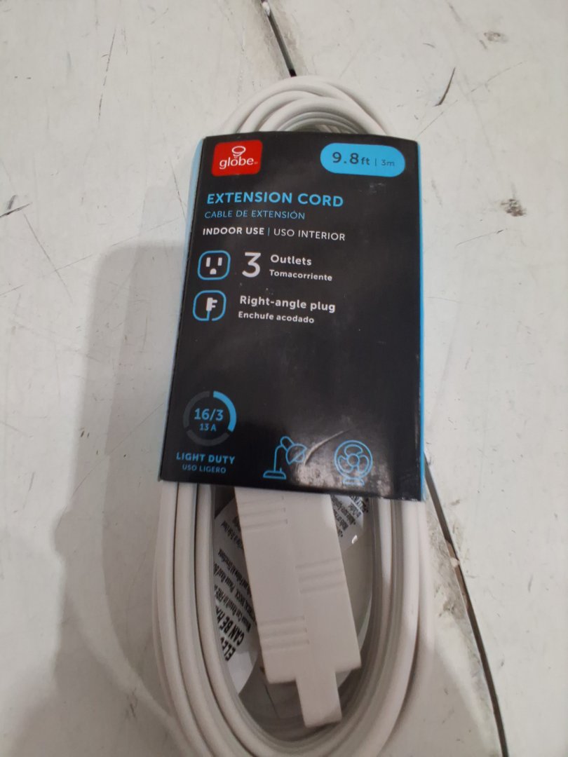 GLOBE ELECTRIC 3-OUTLET INDOOR EXTENSION CORD WITH RIGHT-ANGLE PLUG - GROUNDED - 9.8FT - WHITE