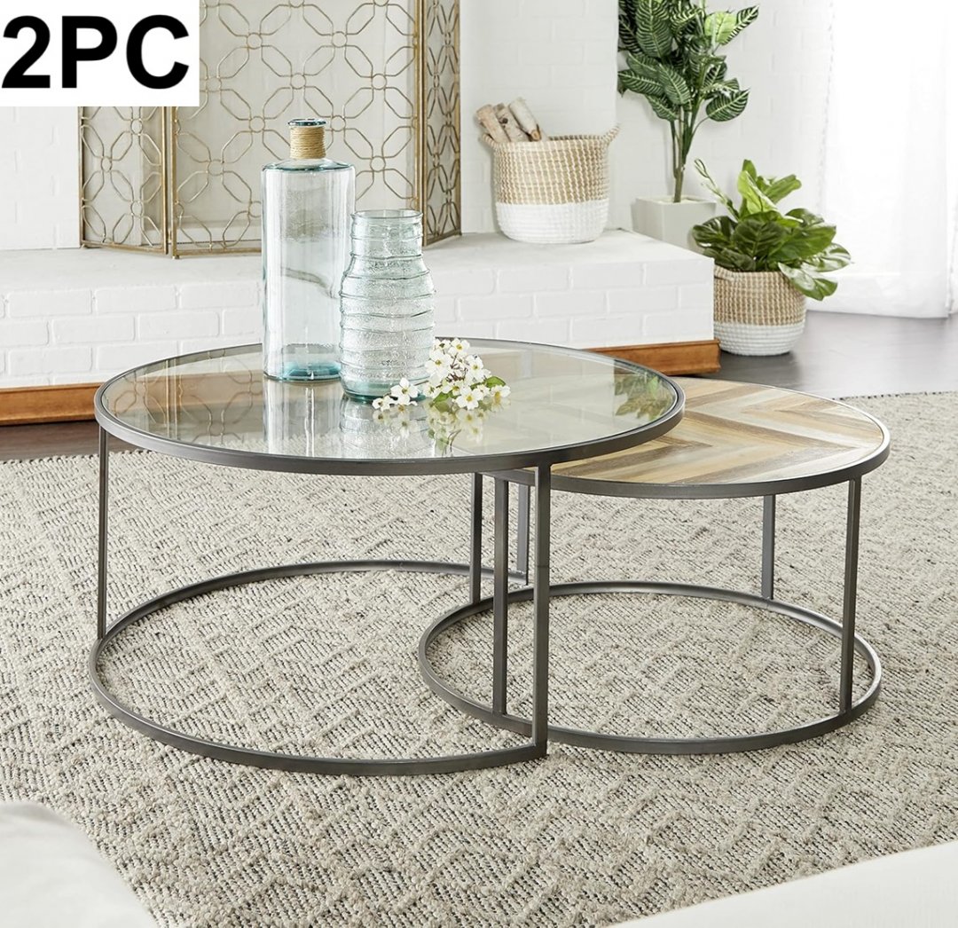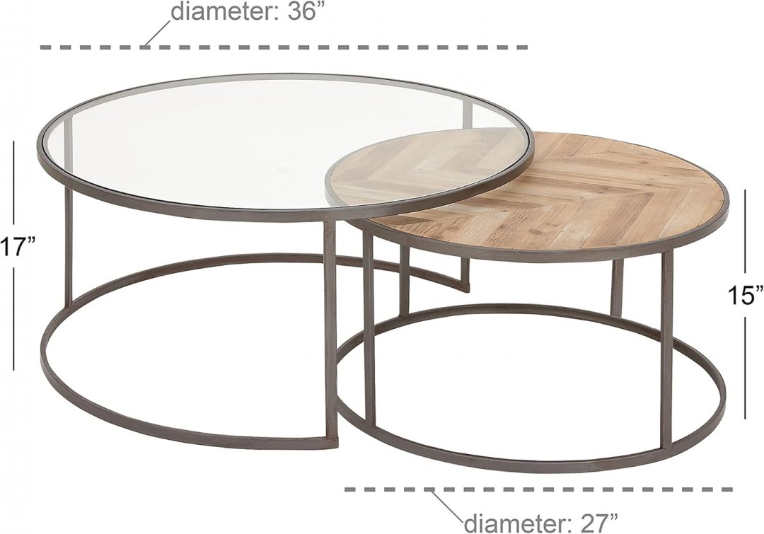 2pc deco 79 wood and glass nesting coffee table set - 36" x 17" & 27" x 15" - brown/gray - (model: 44391)