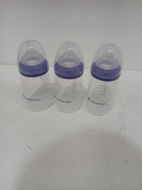 3pk lansinoh feeding bottles - 8oz - medium 3m+ - clear/purple