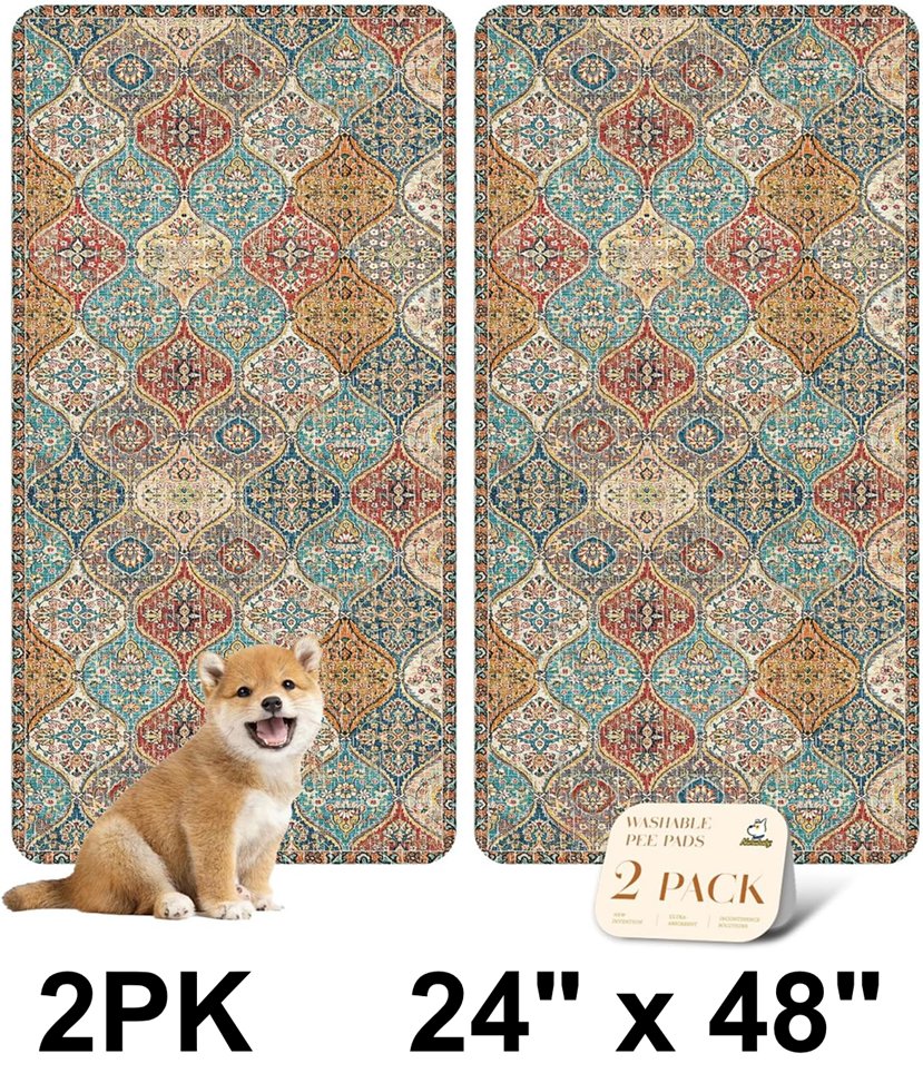 2pk nunubaby Washable Non-Slip Leak-Proof Pee Pads for Dogs - 24" x 48" - Cream/Multicolor
