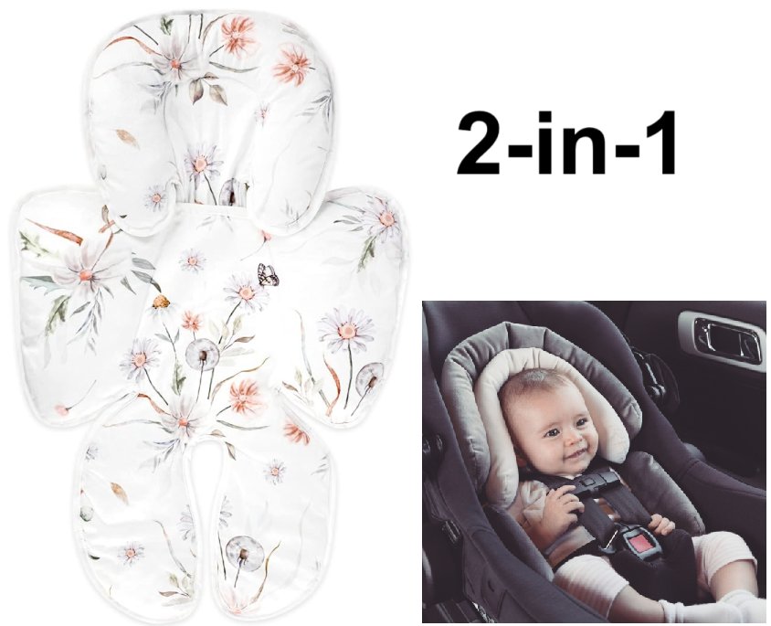 infant car seat insert- 2-in-1 baby head support in stroller/car seat- floral/white