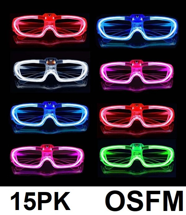 15pk lede glasses for glow in the dark parties - osfm - assorted
