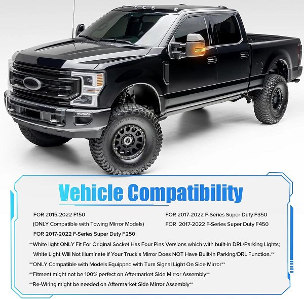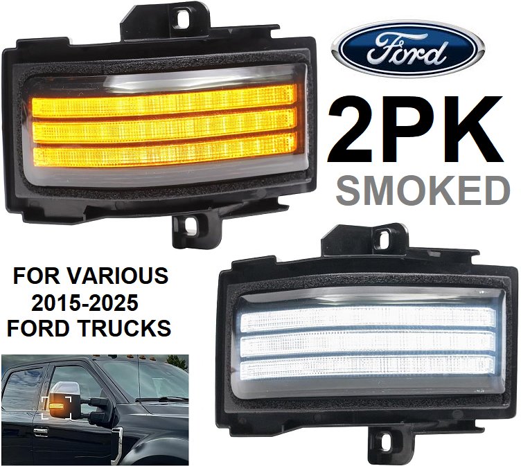 LED Switchback Sequential Amber Blinker White Driving Tow Mirror Turn Signal Lights - for various 2015-2025 for trucks - smoke lenses (model: V-17072226)